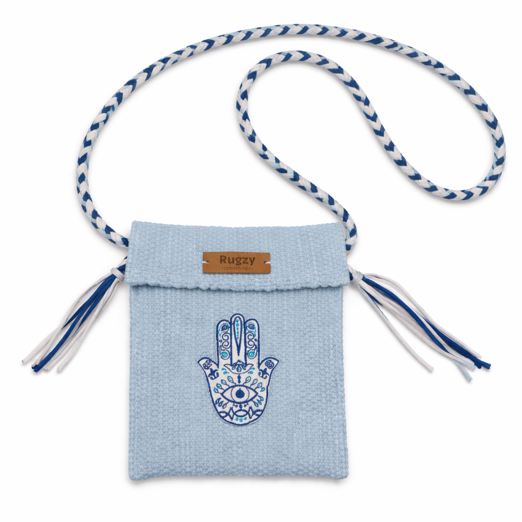 Hand-Loomed Crossbody Bag — Hamsa | Sky Blue
