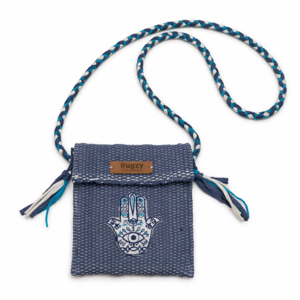 Hand-Loomed Crossbody Bag — Hamsa | Denim Blue
