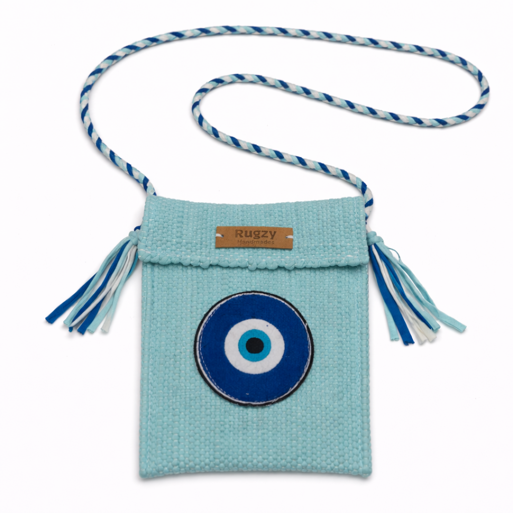 Hand-Loomed Crossbody Bag — Evil Eye | Mint Blue